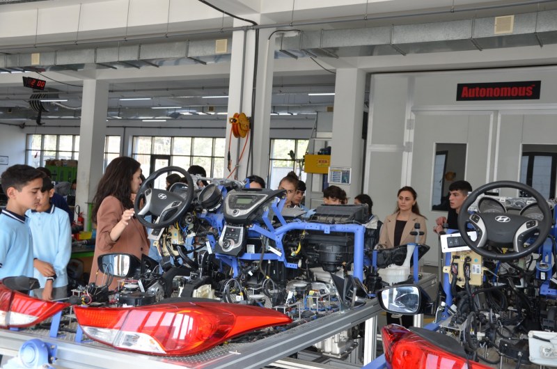 Daha sonra şagirdlər tədris müəssisəsini gəzərək mövcud şəraitlə tanış ola biliblər. Şagirdlər peşə məktəbində avtomobil elektriki, çilingər, dülgər, qaynaqçı, ev dizaynı, elektrik və kompyuterlə bağlı peşələr öyrədilər auditoriya və emalatxaları gəziblər.
