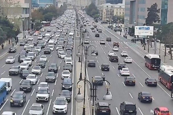 Bakının bir sıra yollarında nəqliyyatın sıxlığı yaranıb.