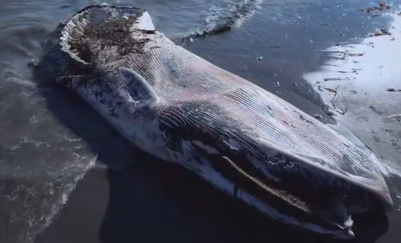 Saxalin adasında 12 metr uzunluğunda siyənək balinası fırtınadan sonra sahildə ölü tapılıb.