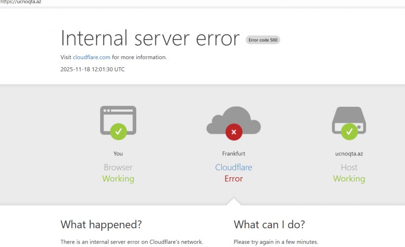"Cloudflare-in xidmətlərində yaranan problem nəticəsində dünyanın müxtəlif ölkələrində çoxlu sayda saytlar açılmır, "Cloudflare Error" tipli xətalar görünür. Cloudflare üzərindən işləyən bir çox Azərbaycan saytları da eyni səbəbdən açılmır və səhv mesajları göstərir. Saytların özündə , serverlərdə problem yoxdur – trafik Cloudflare-dən keçmədiyi üçün müvəqqəti əlçatmaz görünürlər.