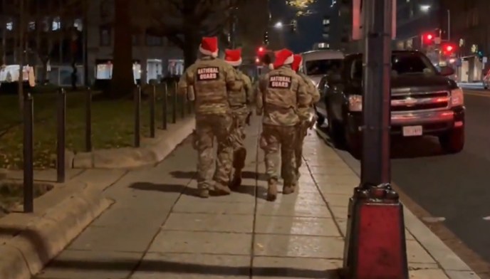 Paylaşımına "Tamamilə əlaqələndirilmiş forma dəyişikliyi" yazan Heqset ABŞ Milli Qvardiyası patrulunun kamuflyaj formasında və qırmızı Milad papaqlarında küçədə hərəkət etdiyini göstərən video edib.