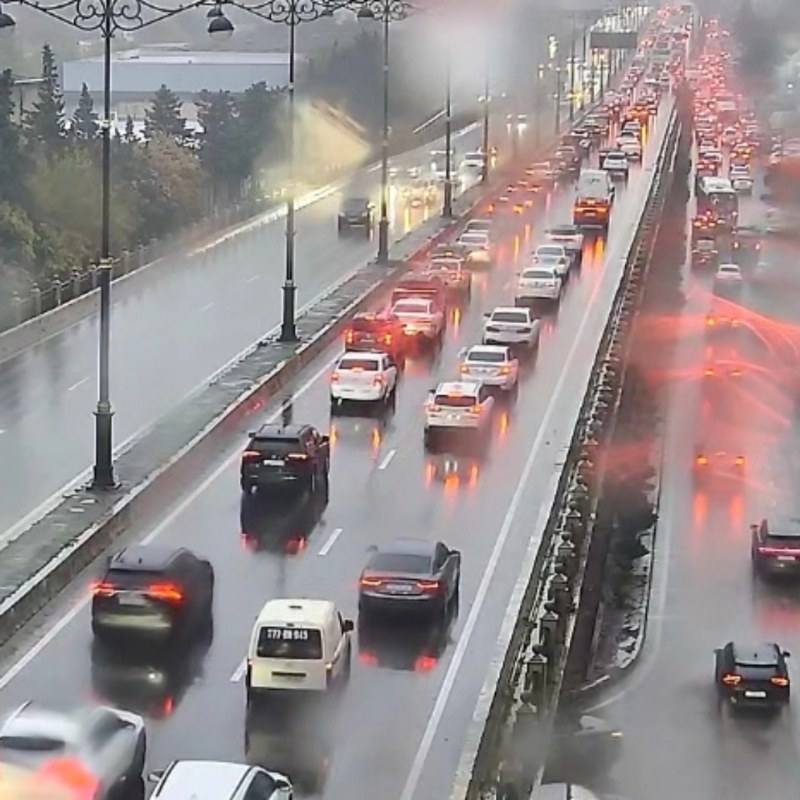 Paytaxtın bır sıra yollarında sıxlıq yaranıb.
