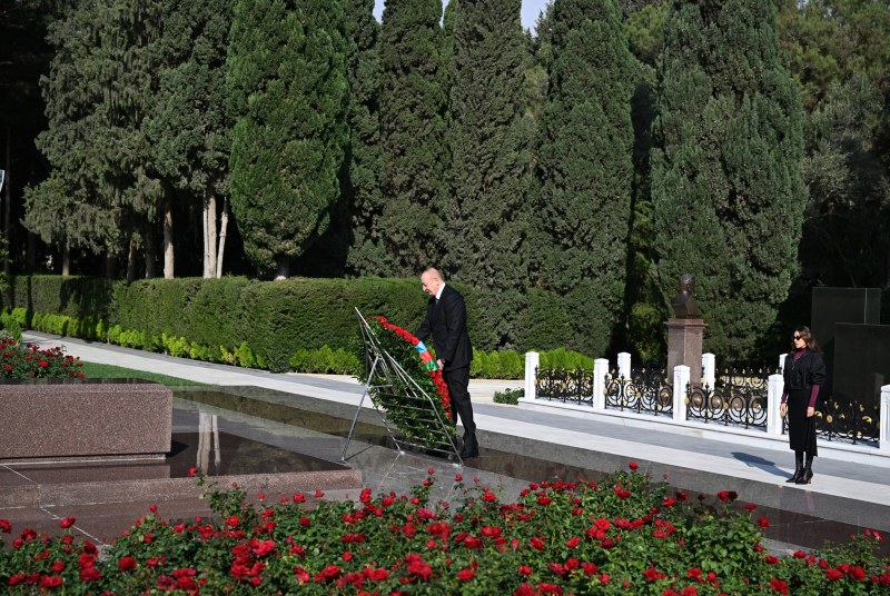 Azərbaycan Respublikasının Prezidenti İlham Əliyev və birinci xanım Mehriban Əliyeva Vətən müharibəsində Qələbənin beşinci ildönümü münasibətilə Fəxri xiyabanda Ümummilli Lider Heydər Əliyevin məzarını ziyarət ediblər.