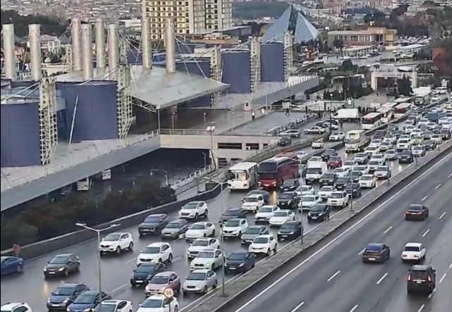 Bakının bir sıra yollarında nəqliyyat sıxlığı müşahidə olunur.