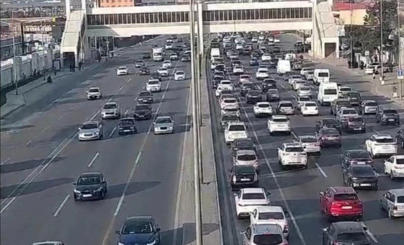 14. Atatürk prospekti, Ziya Bünyadov prospekti istiqamətində sıxlıq müşahidə olunur.