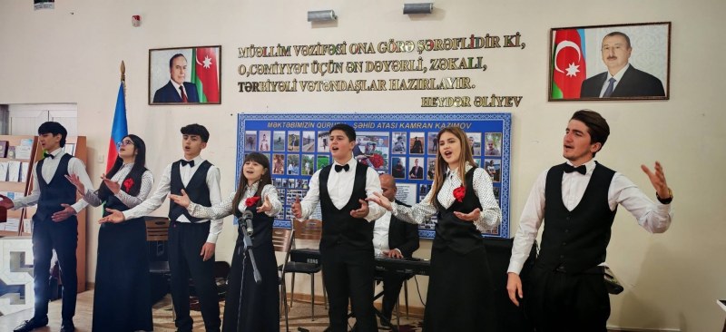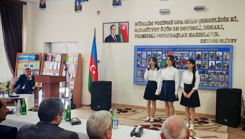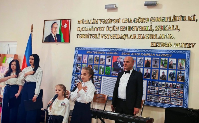 Tədbirdə əvvəlcə Kamran müəllimin nəvələri- şəhid baş leytenant Vüsal Kazımovun övladları Nuray və Aynur  musiqi müəllimi Sevin Əliyevanın pianoda müşayiəti ilə Azərbaycan Respublikasının Dövlət Himni oxudular  və  Vətən yolunda  özlərini qurban verən zəfər şəhidlərin xatirəsi bir dəqiqəlik sükutla anıldı.