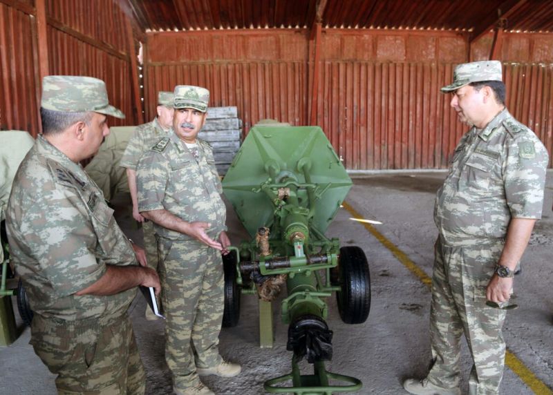 Ehtimal olunan müharibə dövrü də diqqətə alınmaqla səfərbərlik üçün nəzərdə tutulmuş müxtəlif hərbi hissələrin saxlanclarında qorunan döyüş texnikaları, artilleriya qurğuları, eləcə də eşalonlaşdırılmış ehtiyat sursat, mərmilər və digər maddi-texniki vəsaitlərin anbarlarına baxış keçirilib.