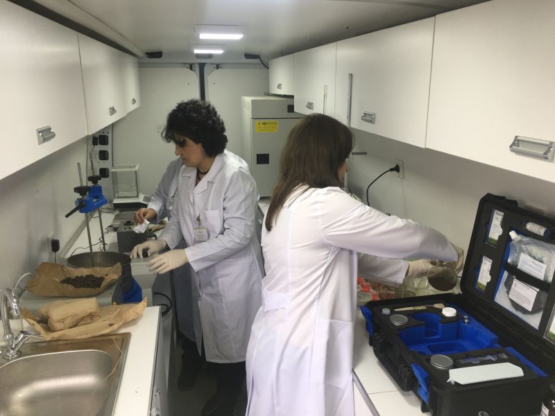 Qeyd edilməlidir ki, ilkin olaraq ərazidə olan zaman çöl şəraitində torpaqlardan xüsusi qurğu vasitəsilə nümunə götürülür. Həmin nümunə kölgədə, havada qurudulur. Mobil laboratoriyada təchiz edilmiş elektron torpaq döyən maşında torpaq nümunəsi döyülür. Diametrləri müxtəlif olan elektron ələk dəsti aparatında avtomatik ələnir, xüsusi paketlərdə müxtəlif analizlər üçün hazırlanır. Mobil laboratoriyada olan elektron tərəzilərdən (texniki və analitik) istifadə edərək, az vaxtda istənilən nəticəni əldə etmək olar.