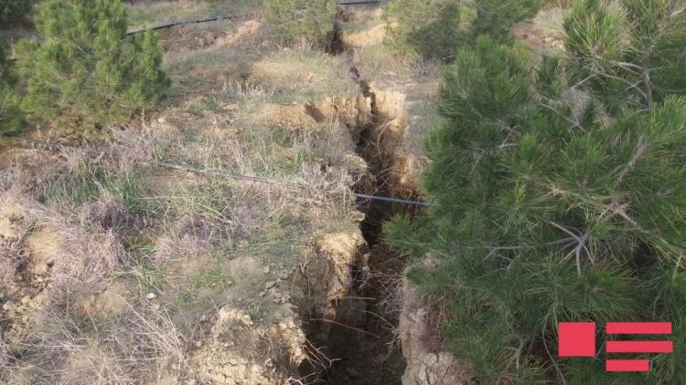 “Bütün istinad divarı boyunca 15-20 santimetr ölçüsündə çatlar əmələ gəlib. Torpaq qatında elə yer var ki, çatların eni 1 metrə, dərinliyi 6-7 metrə çatır. Bundan əlavə, torpaq qatında müxtəlif istiqamətli çox saylı çatlar əmələ gəlib. Biz hazırla onların üzərində müşahidələr aparırıq”, - deyə ekspedisiya rəisi qeyd edib.