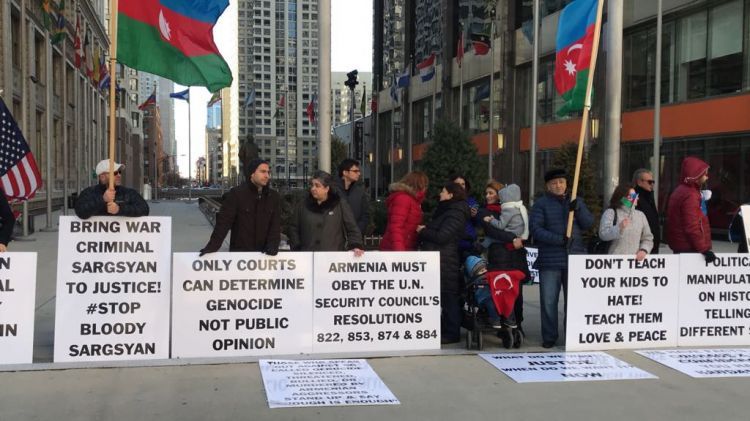 Azərbaycanın ABŞ-dakı səfirliyindən APA-ya bildirilib ki, yürüş zamanı şəhərin mərkəzi küçəsi olan məşhur Miçiqan prospektində toplaşan soydaşlarımız “Xocalıya ədalət”, “Xocalını unutmayın” və digər şüarlar yazılmış plakatlar tutublar.