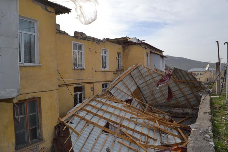 Güclü külək həmin binaların dam örtüklərini tamamilə sıradan çıxarıb, taxta konstruksiyalarla birlikdə binaların üstündən atıb. Rayonun Xoşbulaq, Zağalı, Qaraqullar, Mollahəsənli, Əhmədli, Əmirvar, Quşçu və Zəylik kəndlərində, Alunitdağ, Yuxarı Daşkəsən qəsəbələrində və digər yaşayış məntəqələrində də yaşayış binalarına və sosial obyektlərə ciddi ziyan dəyib, dam örtükləri tamamilə yararsız hala düşüb. İlkin məlumata əsasən, rayon üzrə ümumilikdə 80-dən artıq binanın dam örtüklərinə müxtəlif dərəcədə ziyan dəyib.