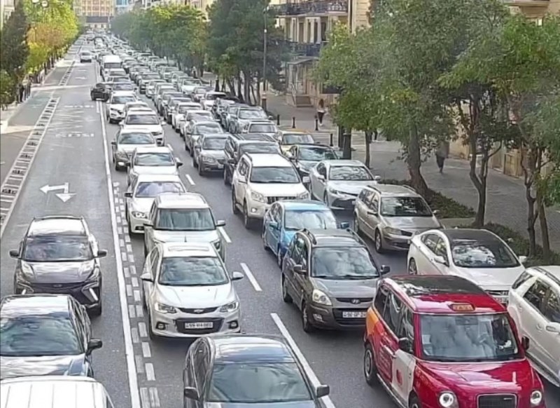 Bakının bir sıra yollarında nəqliyyatın sıxlığı müşahidə olunur.