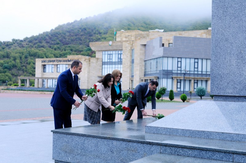 Tədbir iştirakçıları Şəki şəhərinin mərkəzində xalqımızın ümummilli lideri Heydər Əliyevin abidəsini ziyarət edib, önünə gül dəstəsi qoyublar.
