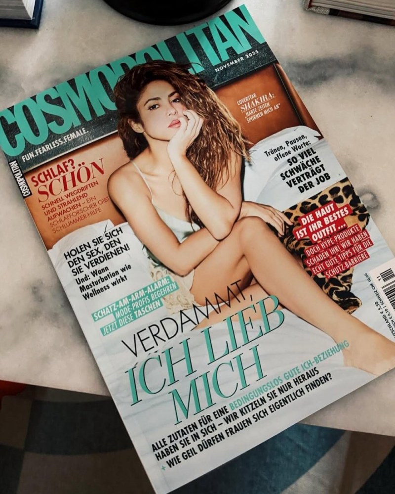48 yaşlı məşhur müğənni Şakira çarpayıda alman jurnalı üçün ipək gecəlikdə poza verib.