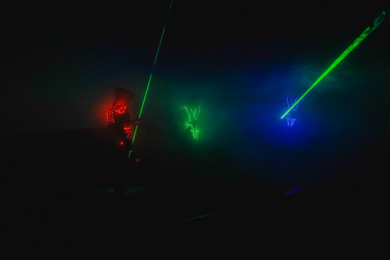 Məkan işıq, ritm və tüstü ilə doldu, onların arasından lazer şüaları parlayırdı.