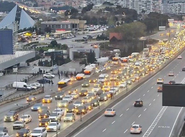 Bakının bəzi yollarında nəqliyyat sıxlığı yaranıb.