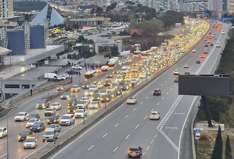 Bakının bir sıra yollarında nəqliyyatın sıxlığı yaranıb.