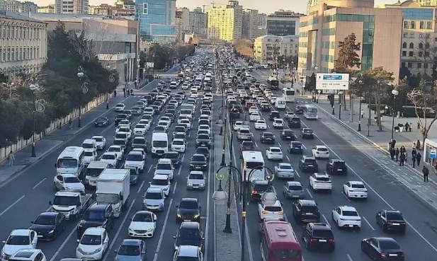 Bakının bir sıra yollarında nəqliyyatın sıxlığı müşahidə olunur.