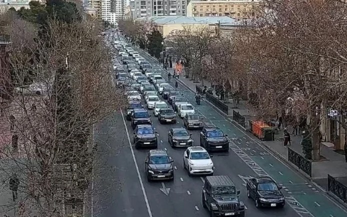 Bakının bir sıra yollarında nəqliyyatın sıxlığı müşahidə olunur.